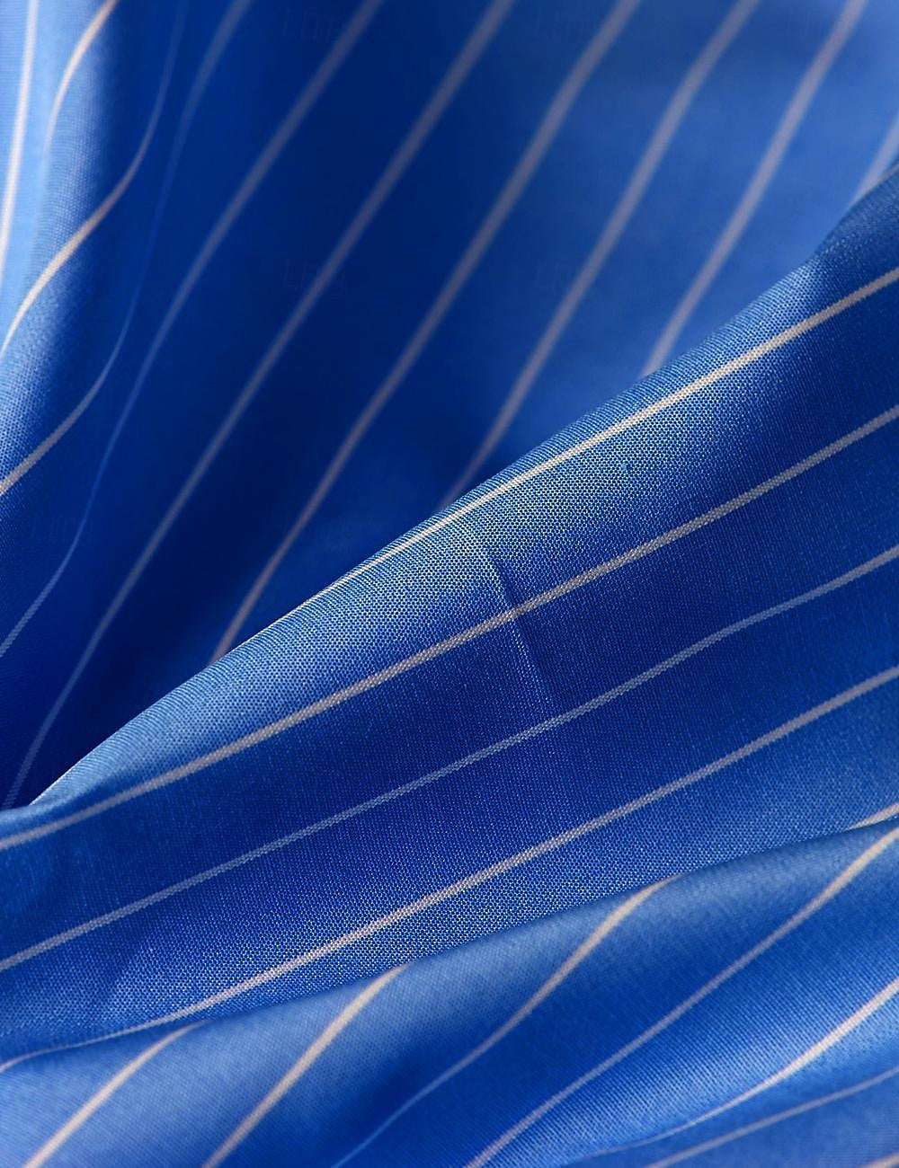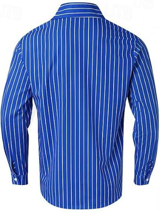 MON3120927 Blue Shirt Men's Standard Fit Long Sleeves Lapel Striped Cotton Blend Shirt