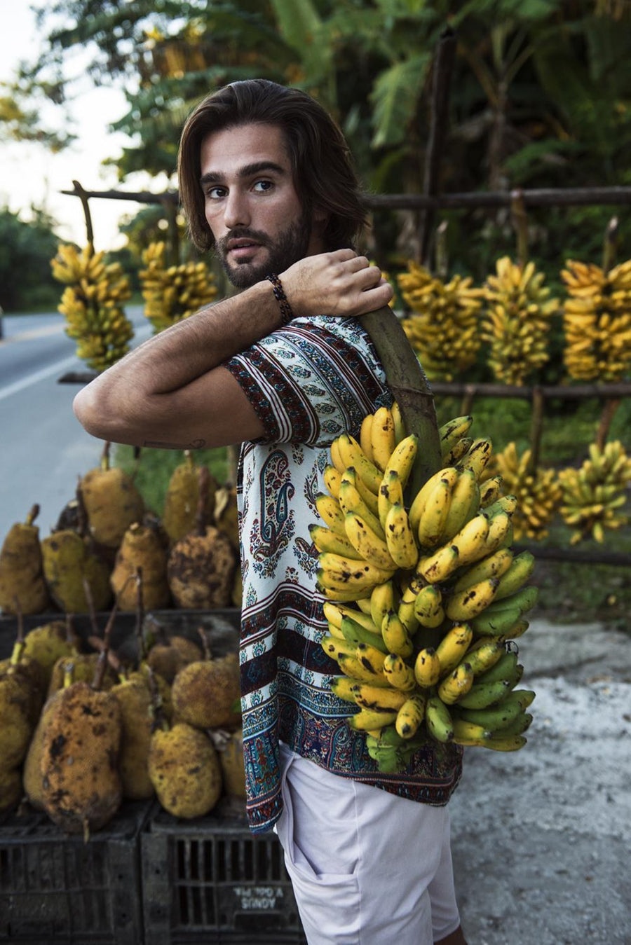 MON3121125W Men's Lapel Casual Short Sleeves Loose Beach Shirt with Printed