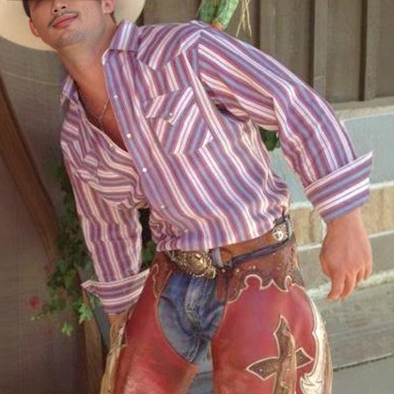 Men's Loose Long Sleeves Casual Striped Shirt with 3D Floral Pattern