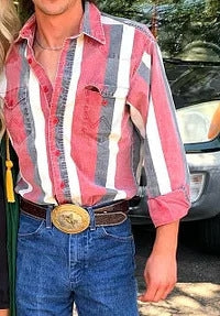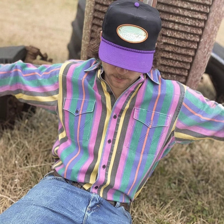 MON3121116W Men's Loose Long Sleeves Casual Striped Shirt with 3D Floral Pattern