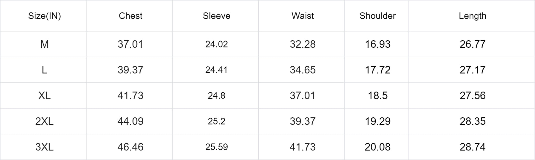 2XL | 44.09 | 25.20 | 39.37 | 19.29 | 28.35 |