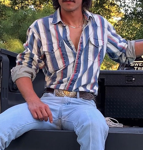 Men's Long Sleeves Vintage Striped Casual Shirt with Pocket