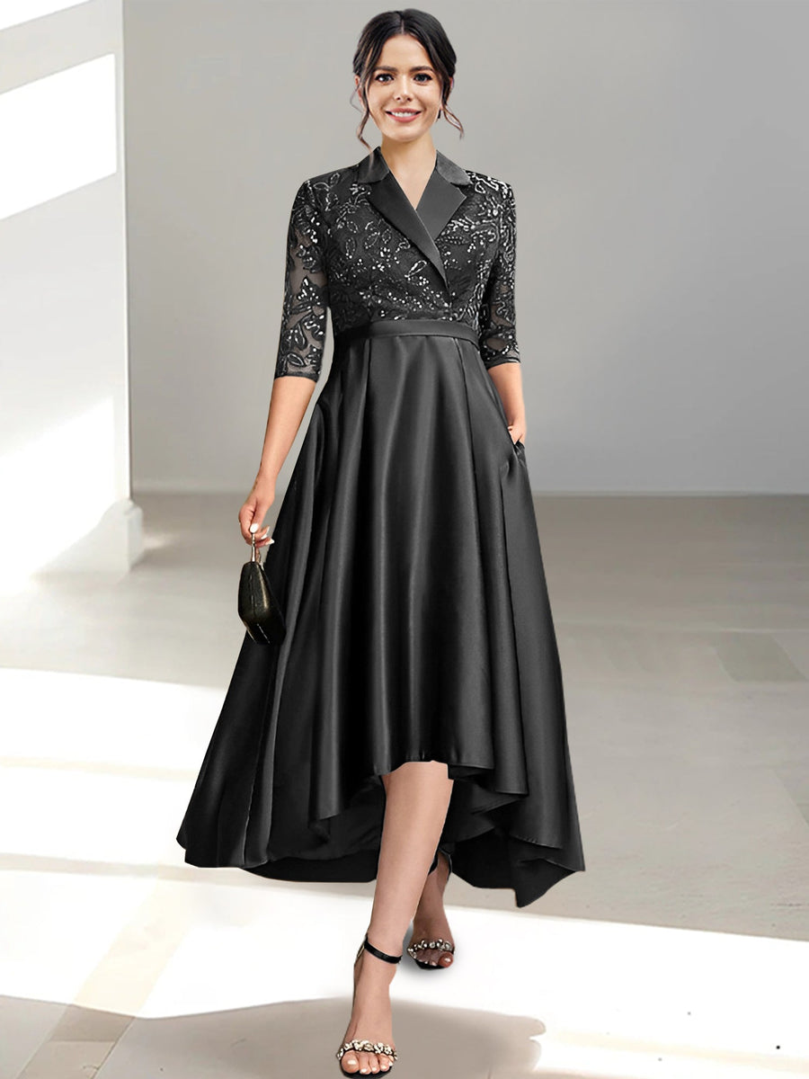 A-Line/Princess V-Neck 3/4 Length Sleeves Asymmetrical Plus Size Mother of the Bride Dresses with Ruffles