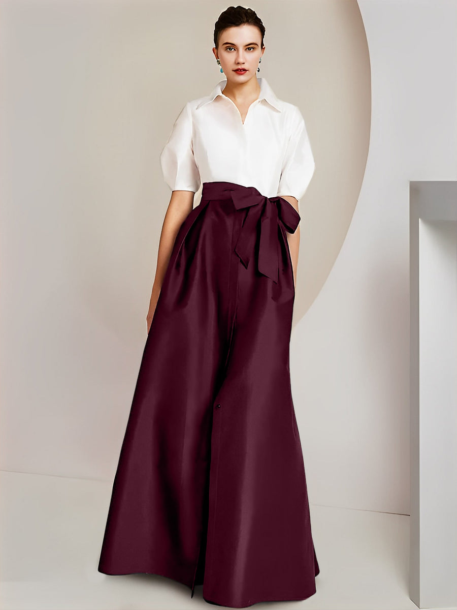 A-Line/Princess Long Sleeves Split Side Mother of the Bride Dresses with Belt Bowknot