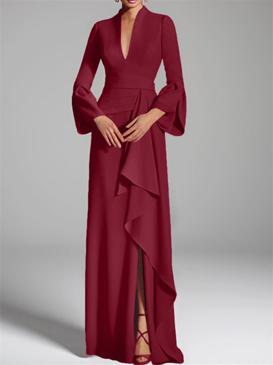 A-Line/Princess V-Neck Long Sleeves Floor-Length Unique Mother of the Bride Dresses with Split Side