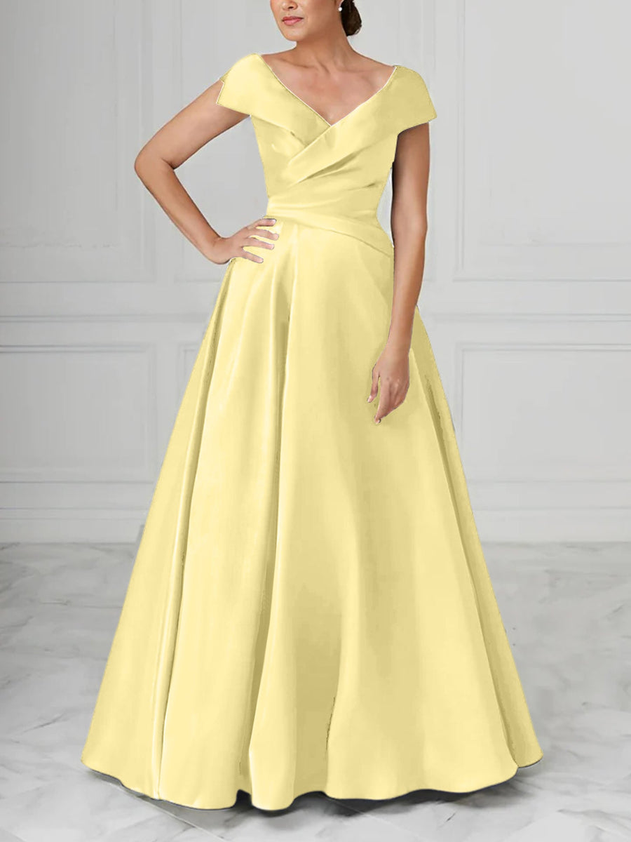 A-Line/Princess V-Neck Satin Mother of the Bride Dresses with Ruched