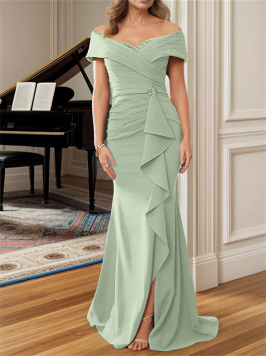 Sheath/Column Off-the-Shoulder Floor-Length Mother of the Bride Dresses