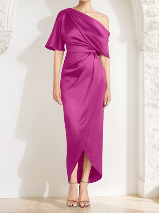 Sheath/Column One-Shoulder Sleeveless Floor-Length Chic Evening Dresses with Ruffles