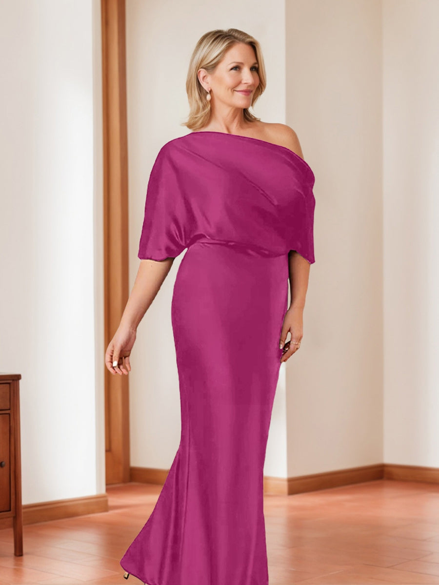 A-Line/Princess One-Shoulder Short Sleeves Floor-Length Mother of the Bride Dress with Split Side