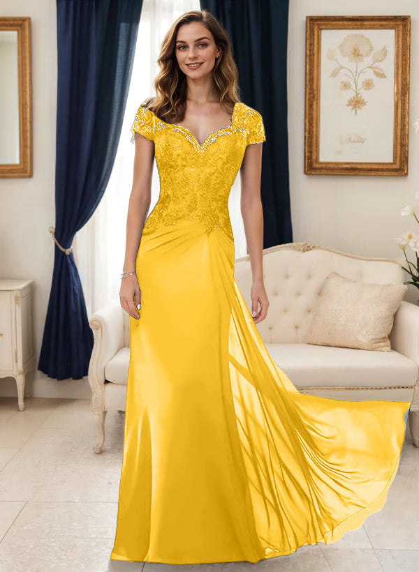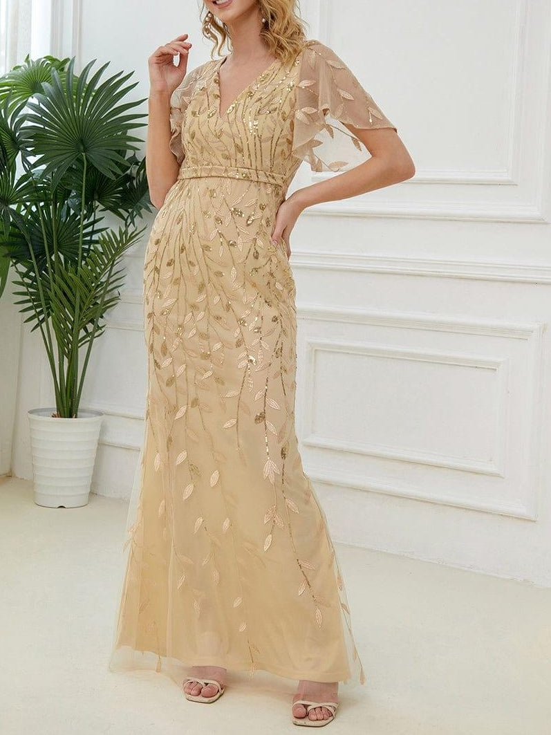 Trumpet/Mermaid Short Sleeves V-Neck Floor-Length Mother of the Bride Dresses with Sequins