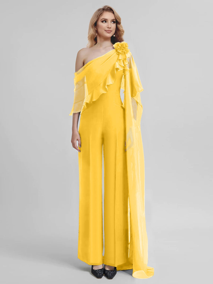 Jumpsuits One-Shoulder Half Sleeves Chiffon Mother Of The Bride Pantsuits
