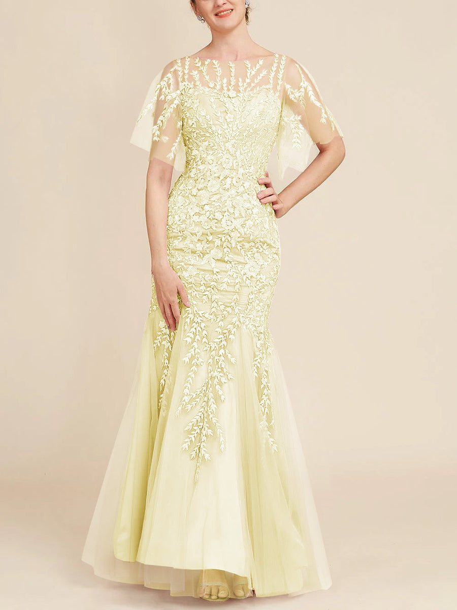 Trumpet/Mermaid Scoop Half Sleeves Floor-Length Mother of the Bride Dresses with Lace
