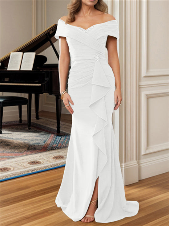 Sheath/Column Off-the-Shoulder Floor-Length Mother of the Bride Dresses