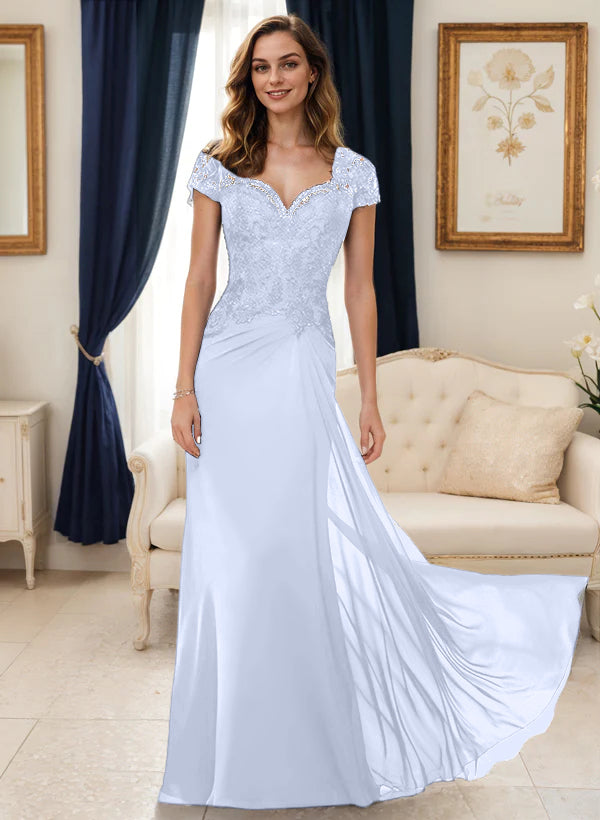 Sheath/Column V-Neck Floor-Length Mother of the Bride Dresses with Short Sleeves