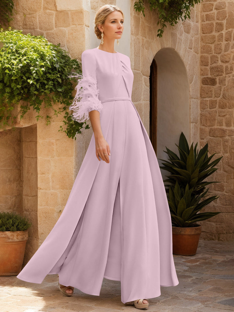 V-Neck Feathers Sleeves Ankle-Length Mother Of The Bride Jumpsuit with Bowknot
