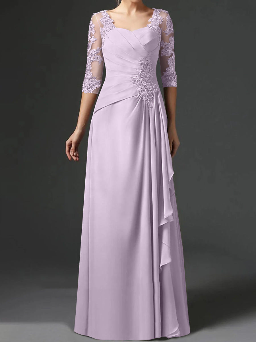 A-Line/Princess 3/4 Sleeves Floor-Length Elegant Mother of the Bride & Groom Dresses with Lace Appliques & Ruffles
