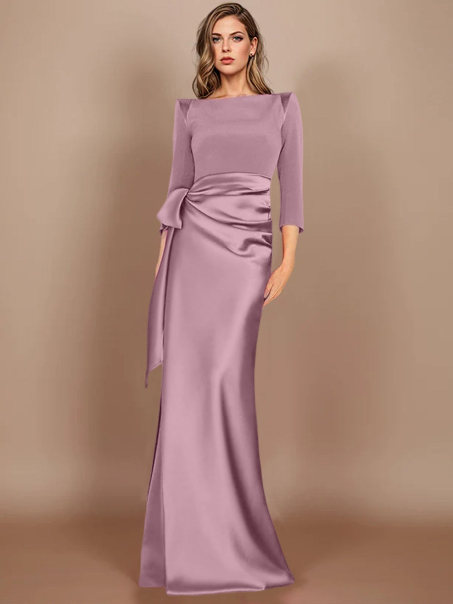 Sheath/Column Scoop 3/4 Length Sleeves Floor-Length Mother of the Bride Dresses with Bow