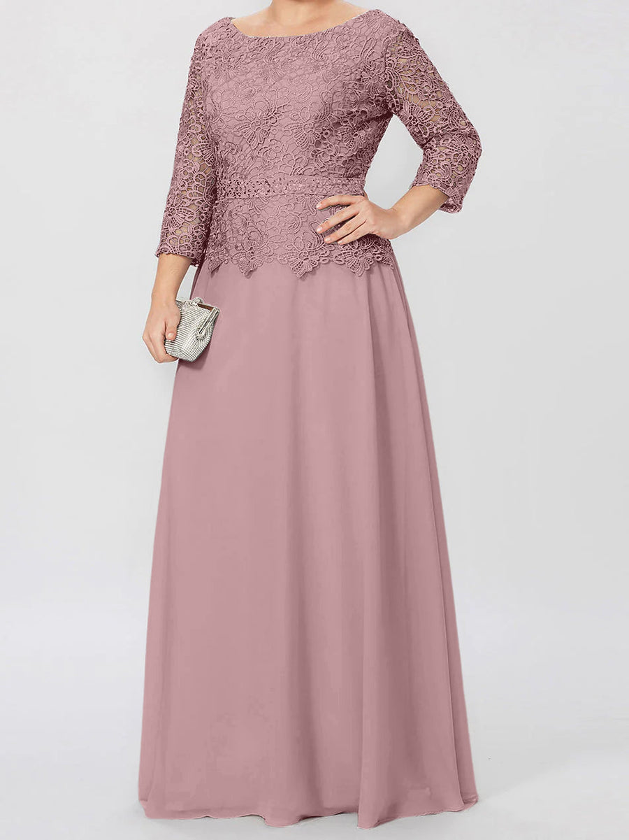 A-Line/Princess Scoop Half Sleeves Floor-Length Plus Size Mother of the Bride Dresses