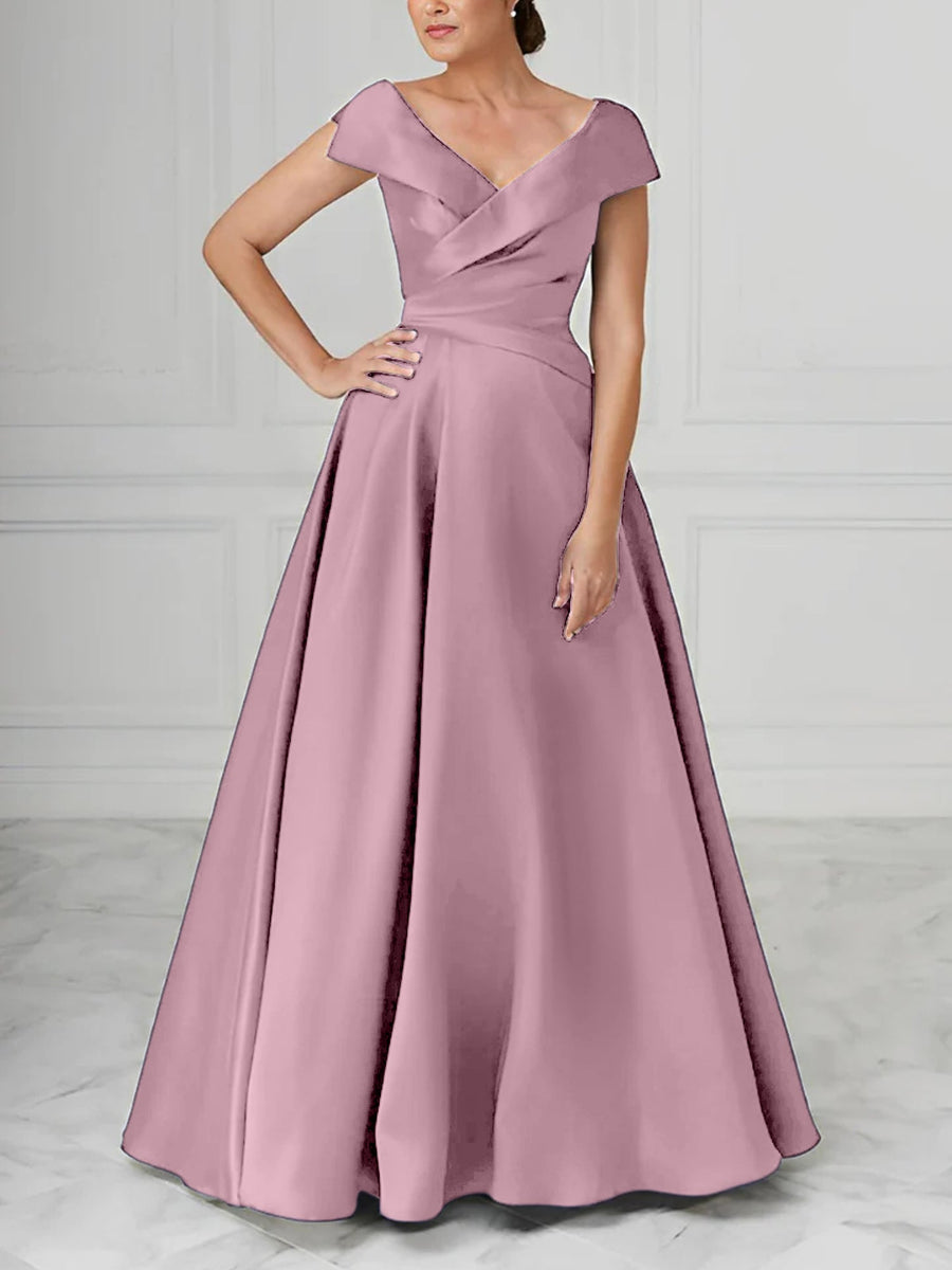 A-Line/Princess V-Neck Satin Mother of the Bride Dresses with Ruched
