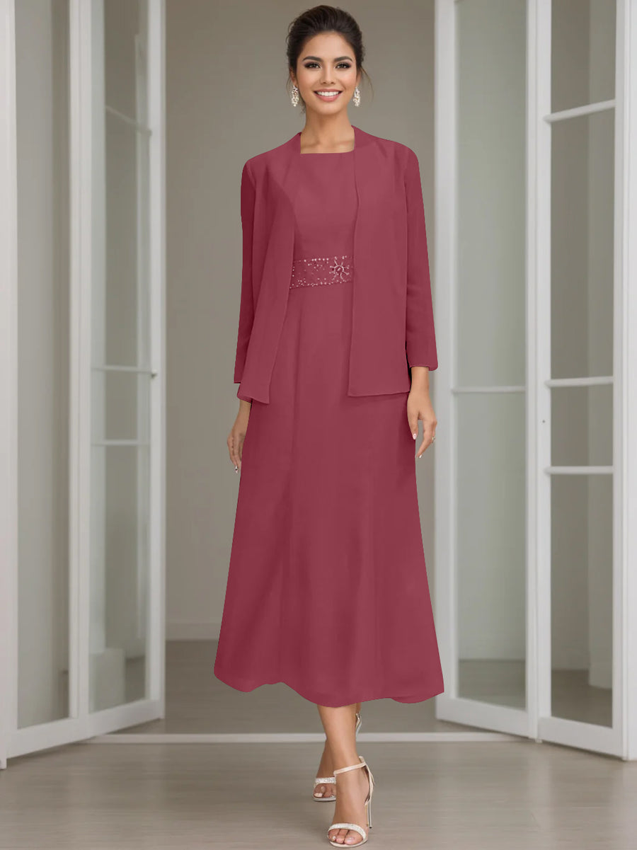 A-Line/Princess Scoop Neck 2 Pcs Tea-Length Plus Size Mother of the Bride Dresses with Ruffles & jacket