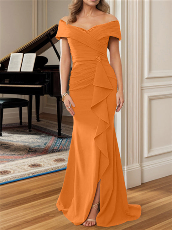 Sheath/Column Off-the-Shoulder Floor-Length Mother of the Bride Dresses