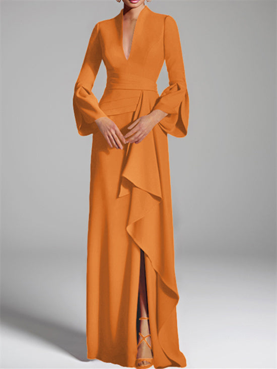 A-Line/Princess V-Neck Long Sleeves Floor-Length Unique Mother of the Bride Dresses with Split Side