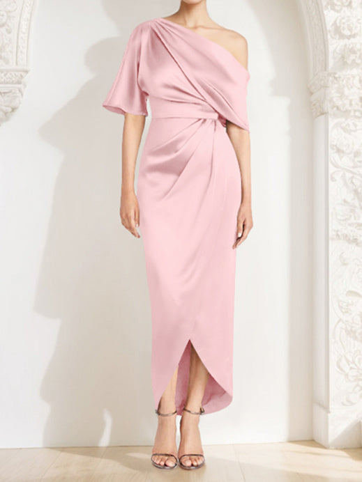 Sheath/Column Off-The-Shoulder Sleeveless Pleated Asymmetrical Mother Of The Bride Dresses with Ruffles