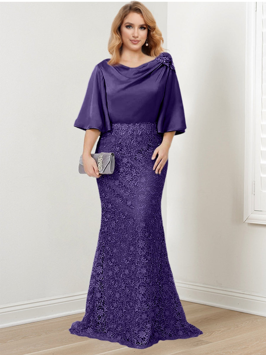 Sheath/Column Cowl Neck 3/4 Sleeves Mother Of The Bride & Groom Dresses with Pearl