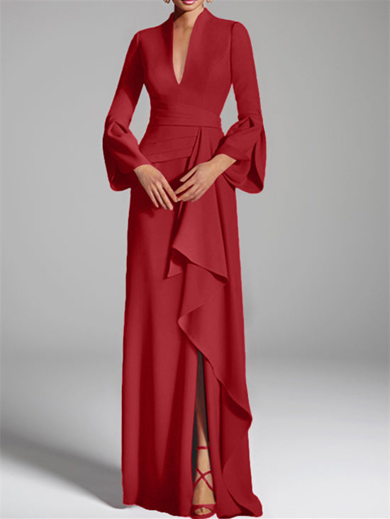 Sheath/Column V-Neck Floor-Length Mother of the Bride Dresses