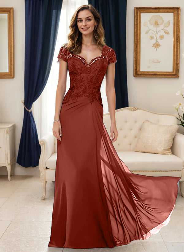 Sheath/Column Sweetheart Short Sleeves Floor-Length Mother of the Bride Dresses with Appliques Lace