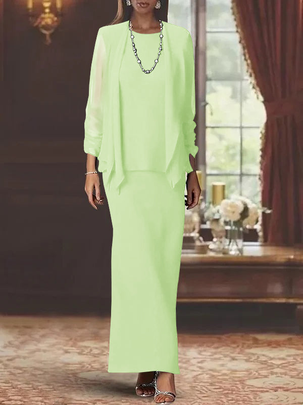 Sheath/Column Scoop Neck Long Sleeves Floor-Length Mother of the Bride Dresses with Jacket