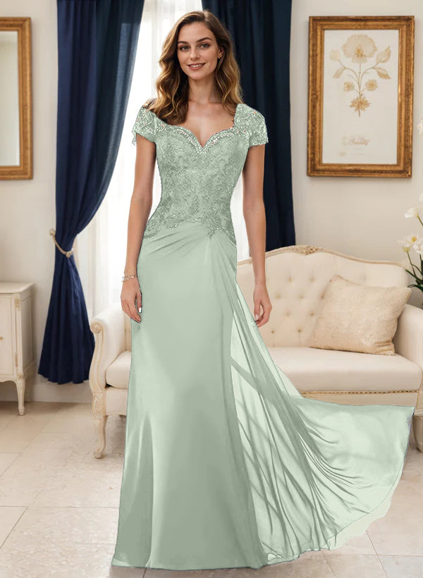 Sheath/Column Sweetheart Short Sleeves Floor-Length Mother of the Bride Dresses with Appliques Lace