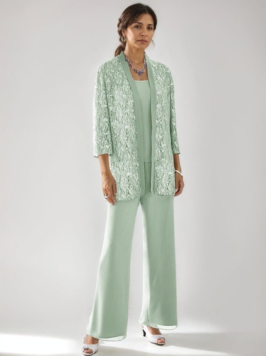 Chiffon V-Neck Mother of the Bride Pantsuits with Pockets