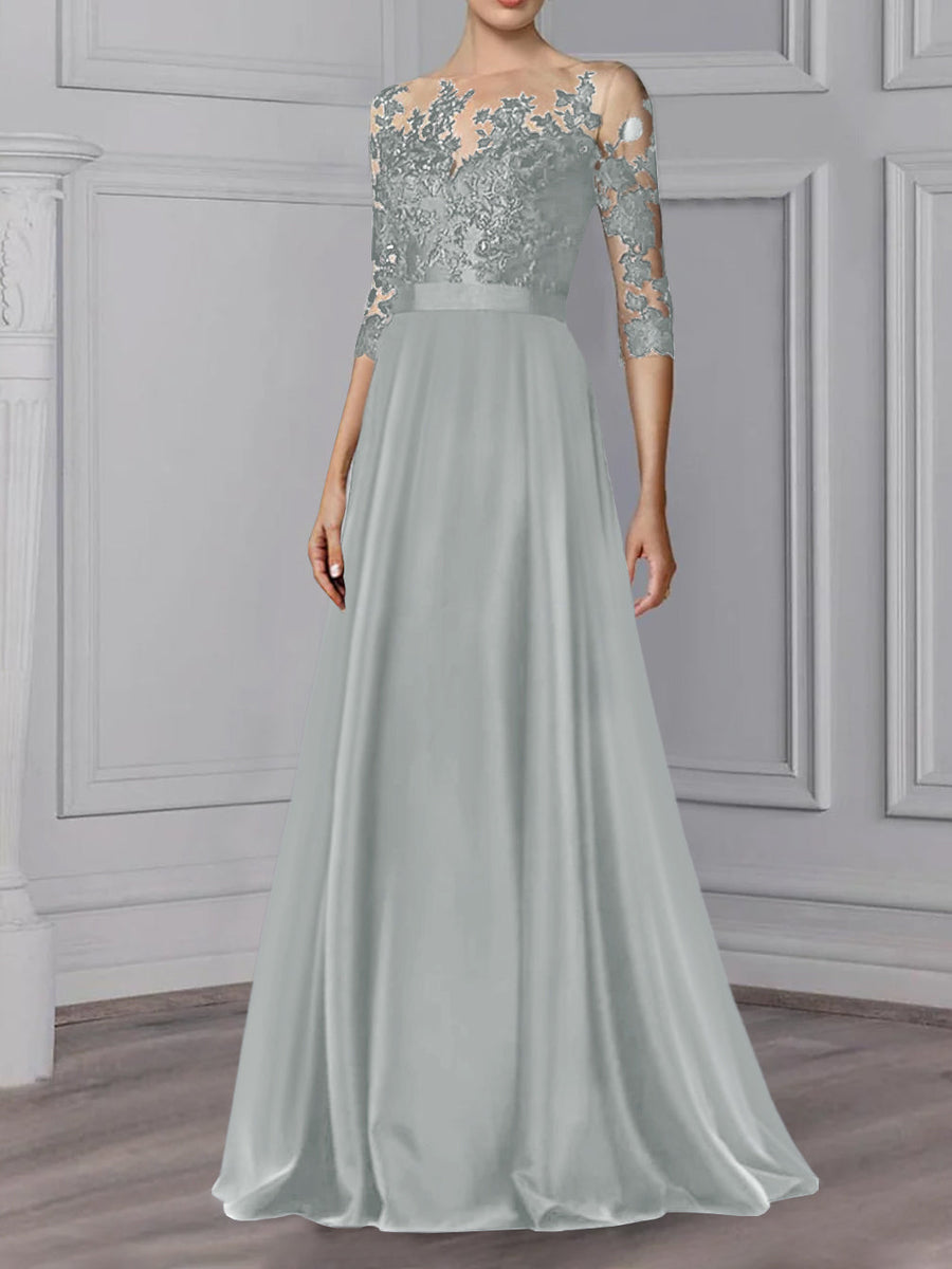 A-Line/Princess Jewel Neck 3/4 Length Sleeves Floor-Length Mother of the Bride Dresses