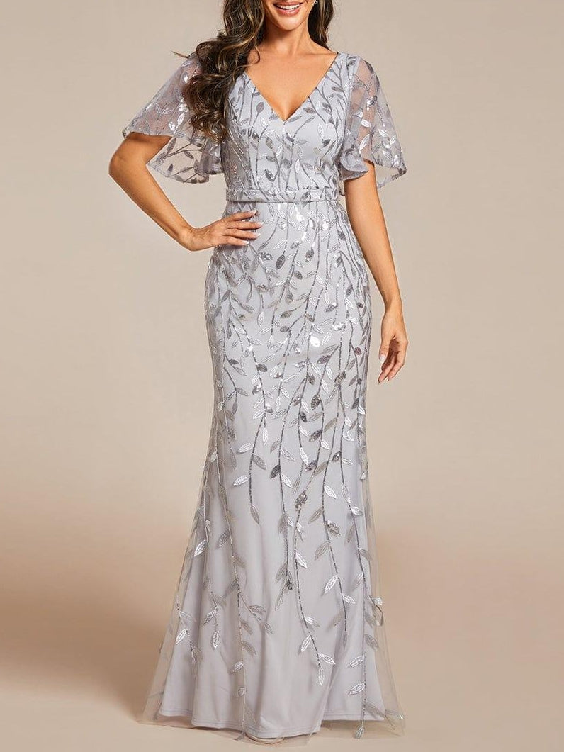 Trumpet/Mermaid Short Sleeves V-Neck Floor-Length Mother of the Bride Dresses with Sequins