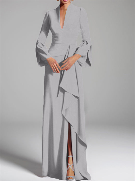 A-Line/Princess V-Neck Long Sleeves Floor-Length Unique Mother of the Bride Dresses with Split Side