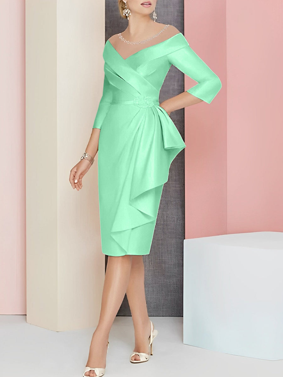 Sheath/Column V-Neck Tea-Length Mother of the Bride Dresses