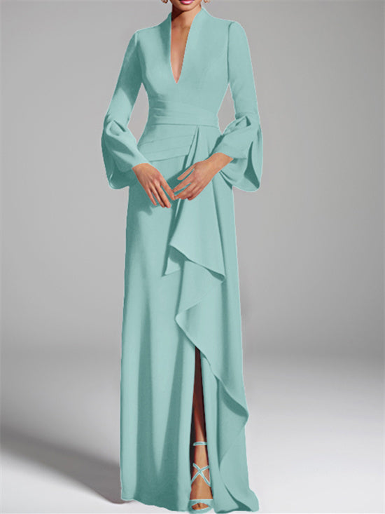 A-Line/Princess V-Neck Long Sleeves Floor-Length Unique Mother of the Bride Dresses with Split Side