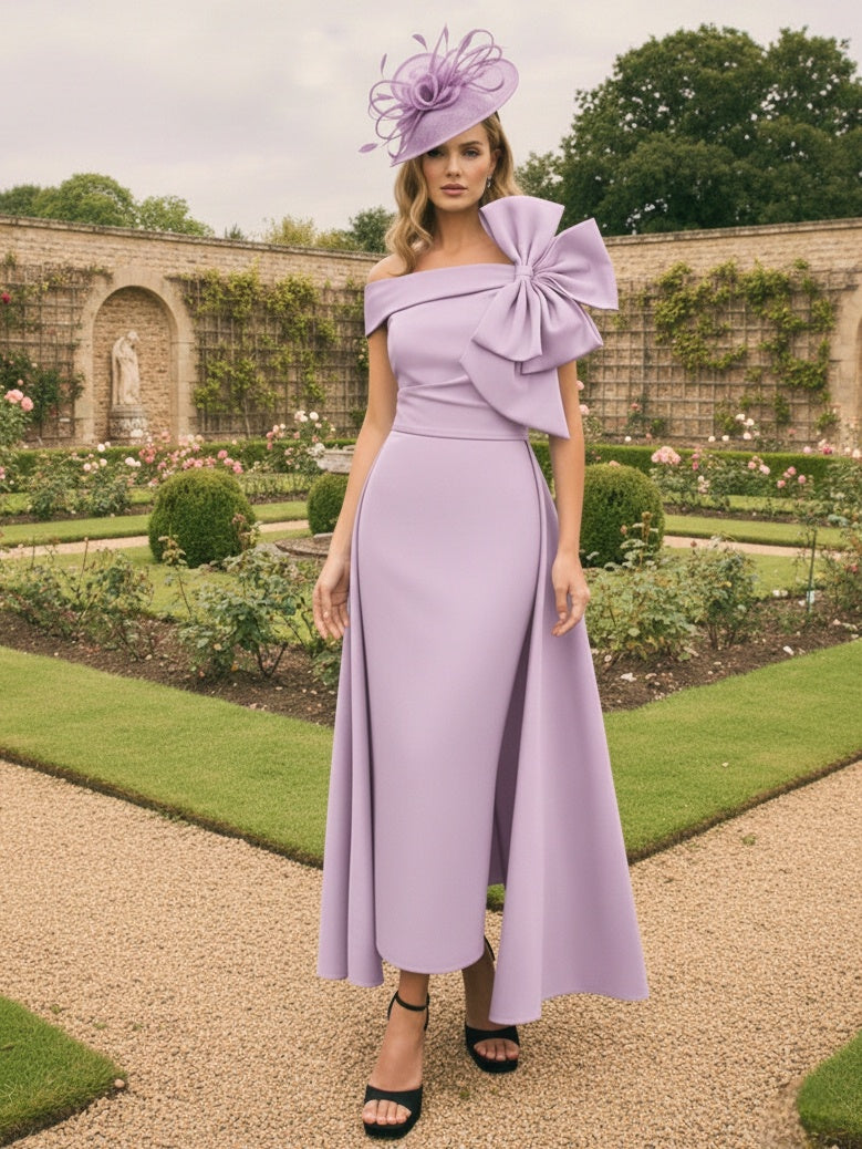 A-Line/Princess Off-the-Shoulder Sleeveless Ankle-Length Mother of the Bride Dresses with Bow(s)
