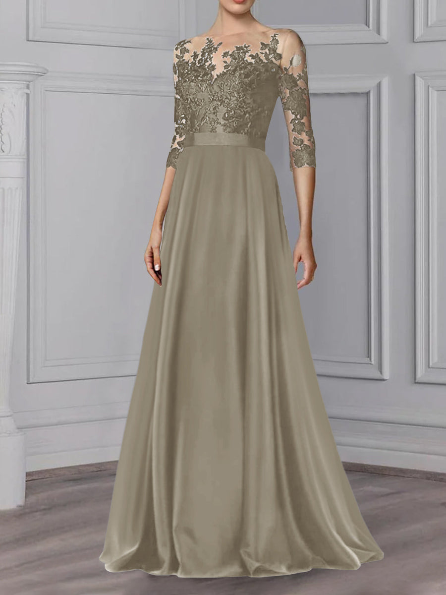 A-Line/Princess 3/4 Sleeves Floor-Length Elegant Mother of the Bride & Groom Dresses with Lace Appliques & Ruffles