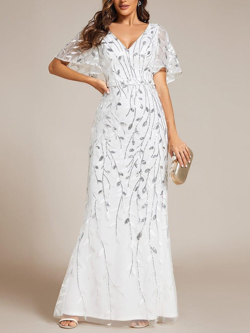 Trumpet/Mermaid Short Sleeves V-Neck Floor-Length Mother of the Bride Dresses with Sequins