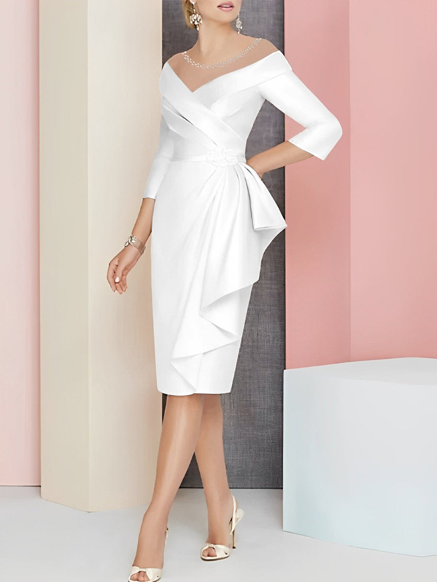 Sheath/Column Off-the-Shoulder Half Sleeves Knee-Length Satin Mother of the Bride Dresses