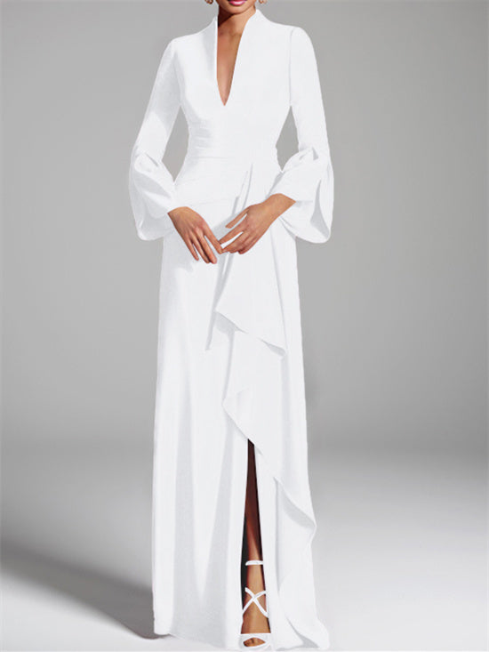 A-Line/Princess V-Neck Long Sleeves Floor-Length Unique Mother of the Bride Dresses with Split Side