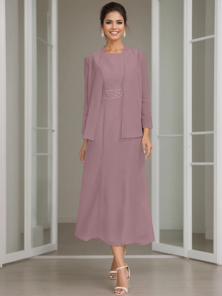 Sheath/Column Jewel Neck Tea-Length Mother of the Bride Dresses