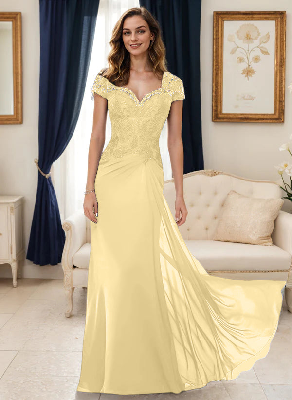 Trumpet/Mermaid Scoop Half Sleeves Floor-Length Mother of the Bride Dresses with Lace