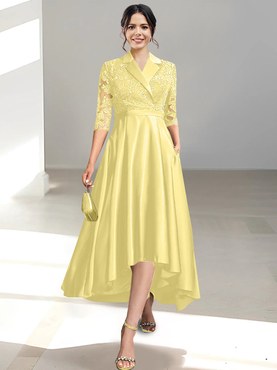 A-Line/Princess V-Neck 3/4 Length Sleeves Asymmetrical Plus Size Mother of the Bride Dresses with Ruffles